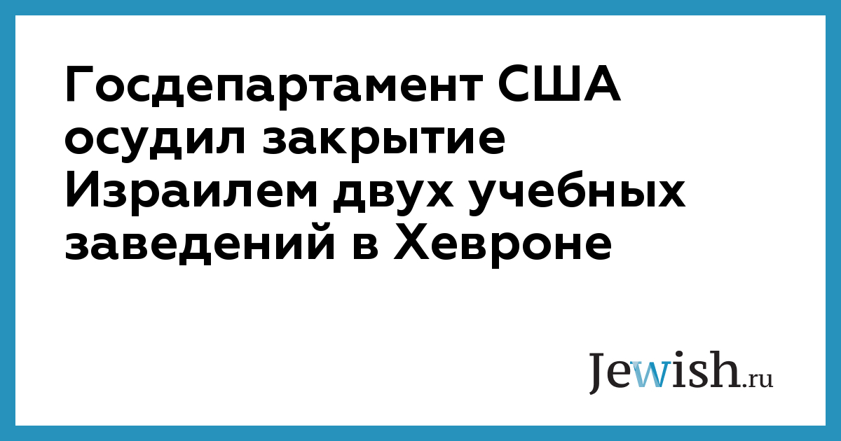 Госдепартамент США осудил закрытие Израилем двух учебных заведений в Хевроне
