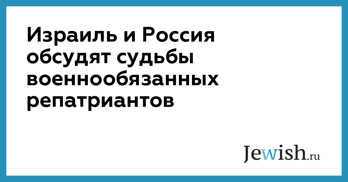 Израиль и Россия обсудят судьбы военнообязанных репатриантов