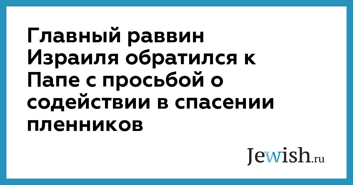 Главный раввин Израиля обратился к Папе с просьбой о содействии в спасении пленников