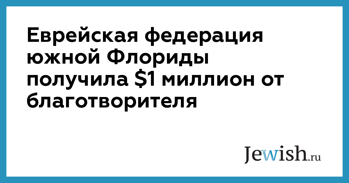 Еврейская федерация южной Флориды получила $1 миллион от благотворителя