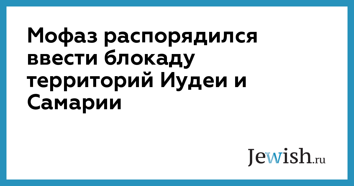 Мофаз распорядился ввести блокаду территорий Иудеи и Самарии