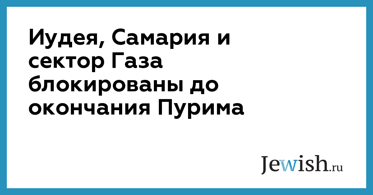 Иудея, Самария и сектор Газа блокированы до окончания Пурима