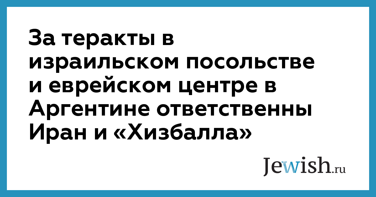 За теракты в израильском посольстве и еврейском центре в Аргентине ответственны Иран и «Хизбалла»