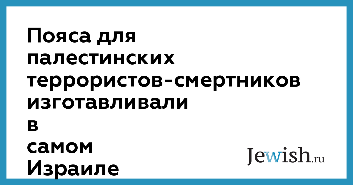 Пояса для палестинских террористов-смертников изготавливали в самом Израиле