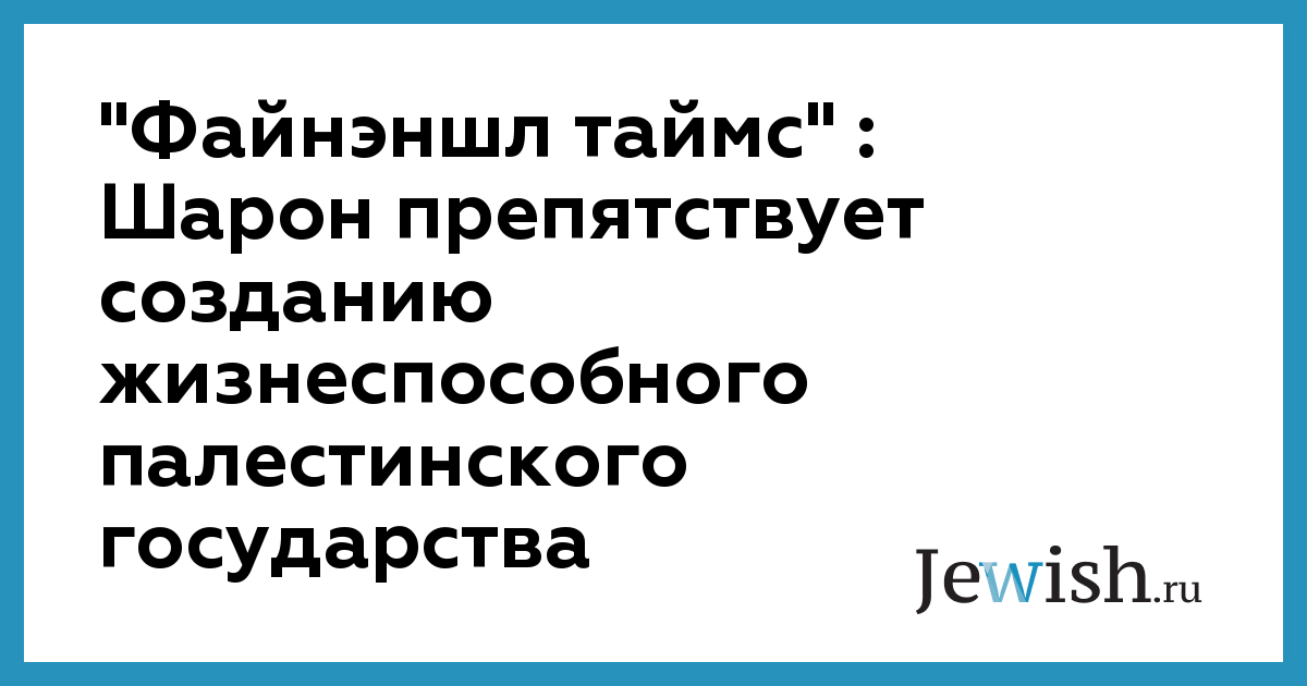 Правительство Шарона препятствует как созданию жизнеспособного палестинского государства, так и политическому процессу, который мог бы привести к появлению такого государства. Считается, что такое государство могло бы стать пристанищем для палестинских террористов, которые оказались бы вне досягаемости Израиля. Это лживые отговорки. На деле все наоборот: Израилю куда легче было бы иметь дело с терроризмом, исходящим с территории соседнего государства, чем с вооруженным сопротивлением палестинского народа численностью в три с половиной миллиона, который живет среди евреев. Этот вывод напрашивается из иракской кампании: США и Великобритания разгромили иракские войска, используя средства, которые они никогда не решились бы применить против населения оккупированной территории. Опыт Израиля наилучшим образом демонстрирует разницу между внутренним терроризмом и угрозой террора извне. Сейчас практически не существует экспорта терроризма в Израиль из соседних арабских государств, и, конечно, не потому, что они испытывают особые симпатии к еврейскому государству, а потому что им продемонстрировали, какова цена поддержки или попустительства терроризму, — отмечает британская газета "Файнэншл таймс".