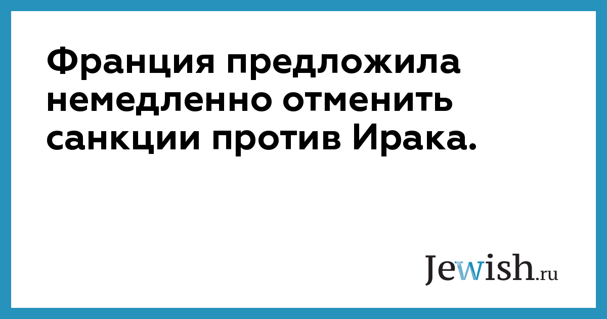На минувшей неделе президент США Джордж Буш призвал ООН как можно быстрее отменить экономические санкции, введенные против Ирака после войны 1991г. в Персидском заливе. Снятие эмбарго позволит Ираку беспрепятственно продавать нефть, что поможет скорейшей финансовой реконструкции страны.