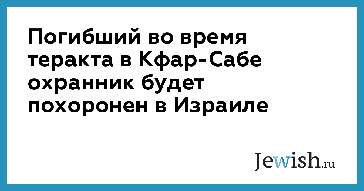 Погибший во время теракта в Кфар-Сабе охранник будет похоронен в Израиле