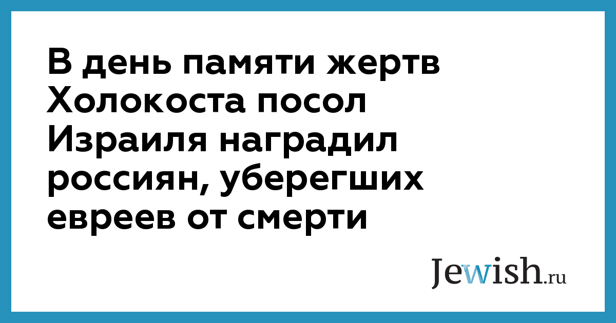 В день памяти жертв Холокоста посол Израиля наградил россиян, уберегших евреев от смерти