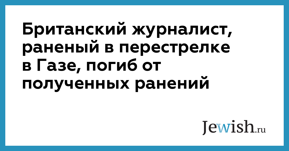 Британский журналист, раненый в перестрелке в Газе, погиб от полученных ранений