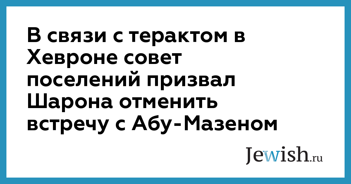 В связи с терактом в Хевроне совет поселений призвал Шарона отменить встречу с Абу-Мазеном