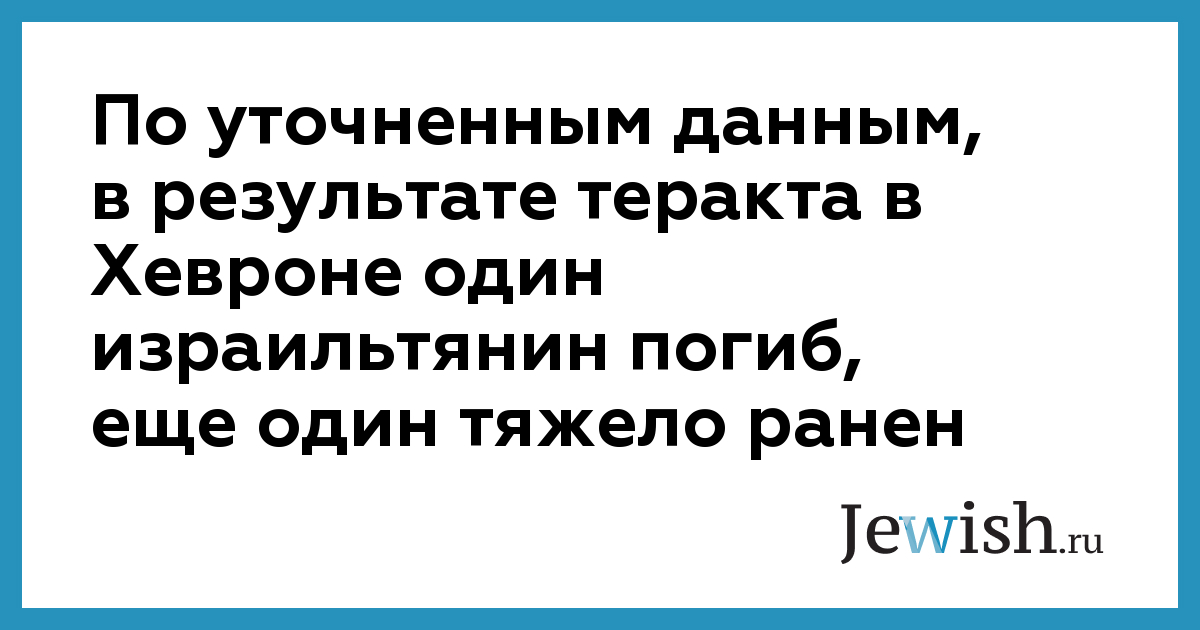 По уточненным данным, в результате теракта в Хевроне один израильтянин погиб, еще один тяжело ранен