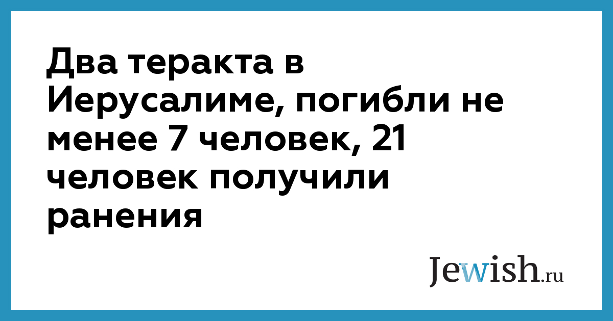 Два теракта в Иерусалиме, погибли не менее 7 человек, 21 человек получили ранения