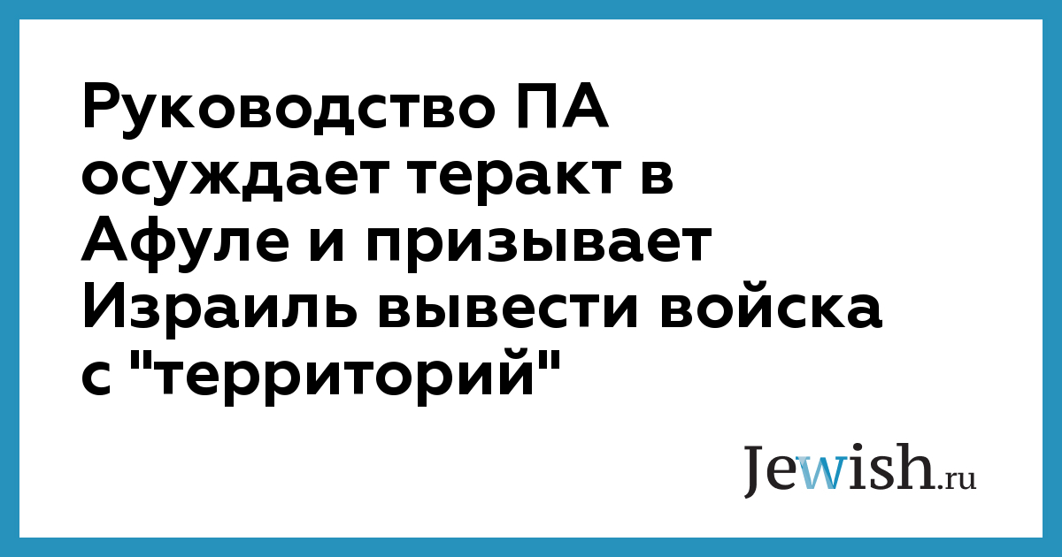 Руководство ПА осуждает теракт в Афуле и призывает Израиль вывести войска с "территорий"