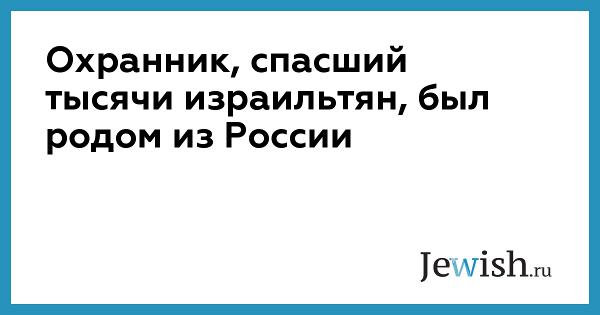 Охранник, спасший тысячи израильтян, был родом из России