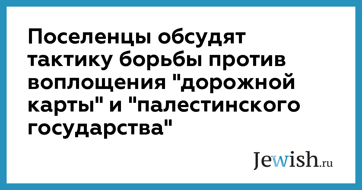 Поселенцы обсудят тактику борьбы против воплощения "дорожной карты" и "палестинского государства"