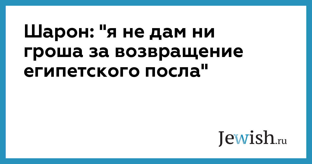 Шарон: "я не дам ни гроша за возвращение египетского посла"