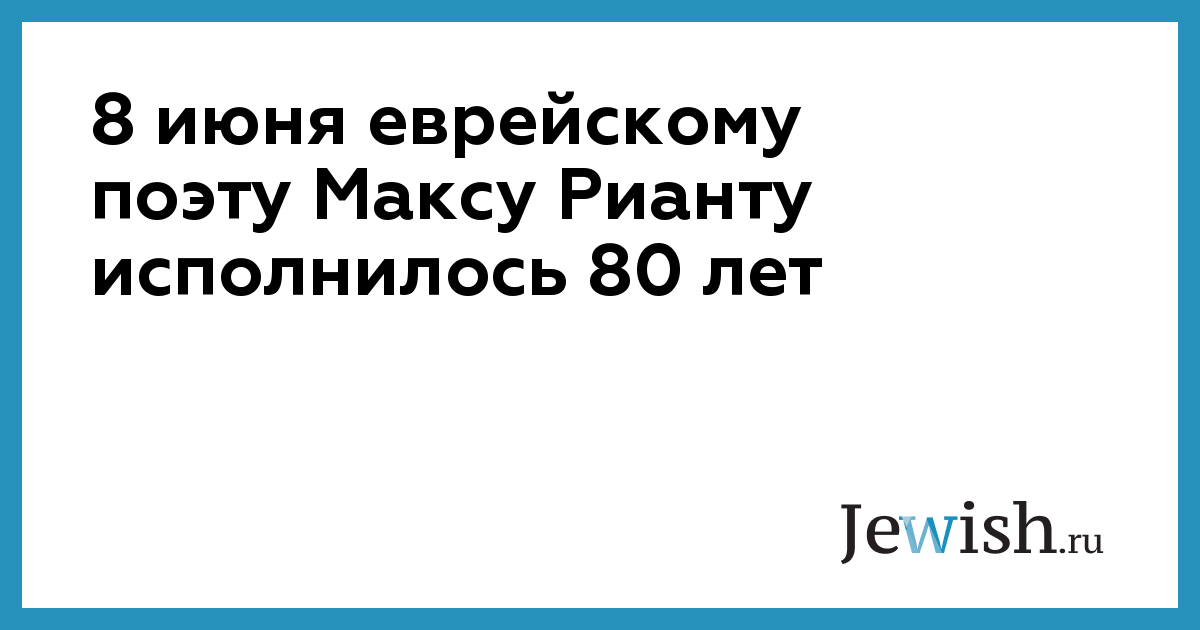 8 июня еврейскому поэту Максу Рианту исполнилось 80 лет