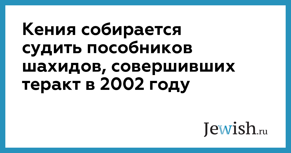 Напомним, что 28 ноября 2002 года три террориста-самоубийцы на автомобиле груженом взрывчаткой, врезались в здание отеля, в котором в тот момент находились израильские туристы. За несколько минут до этого двумя ракетами был обстрелян израильский пассажирский самолет, взлетающий из аэропорта Момбаса с 261 пассажиром на борту,- сообщает JTA.