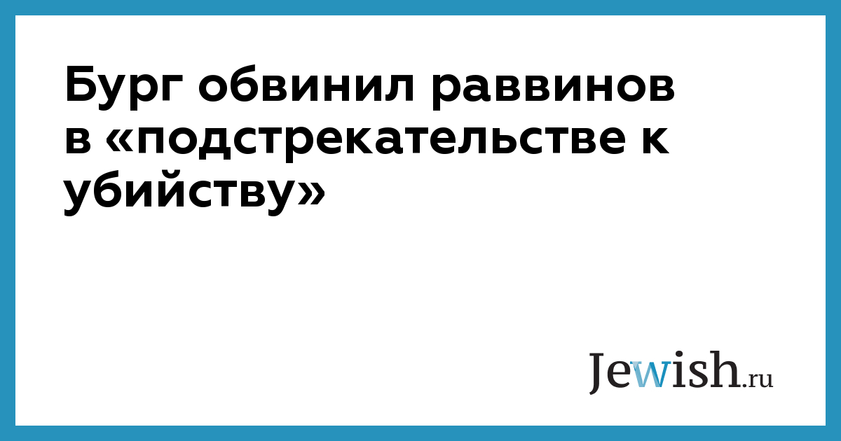 Бург обвинил раввинов в «подстрекательстве к убийству»