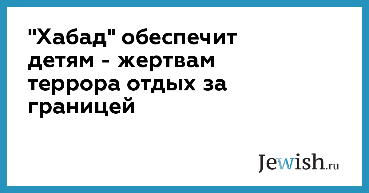 "Хабад" обеспечит детям — жертвам террора отдых за границей