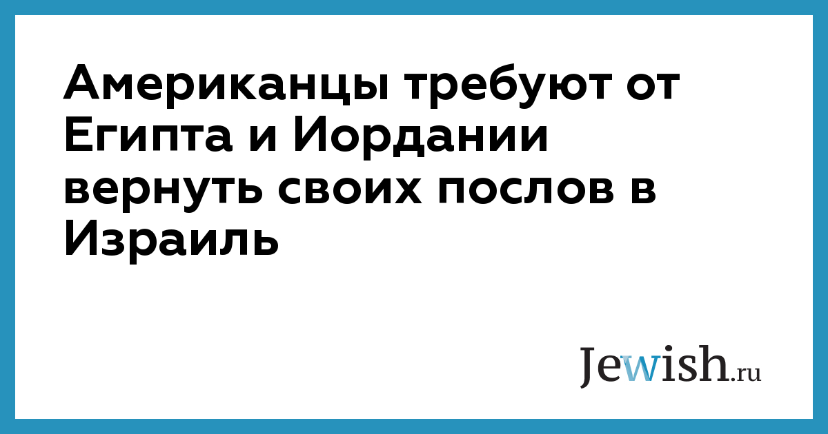 Американцы требуют от Египта и Иордании вернуть своих послов в Израиль