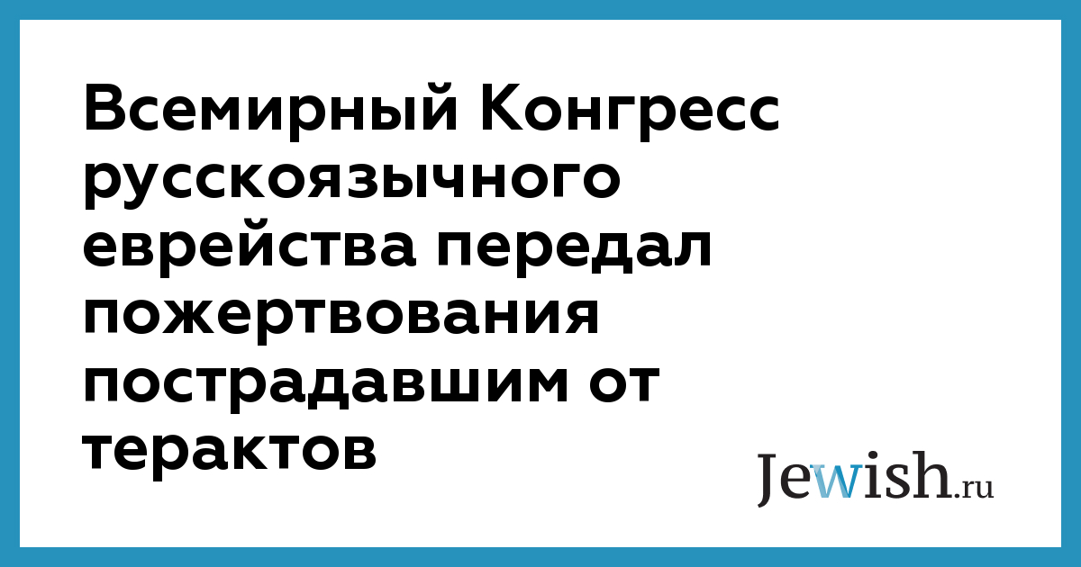 Всемирный Конгресс русскоязычного еврейства передал пожертвования пострадавшим от терактов