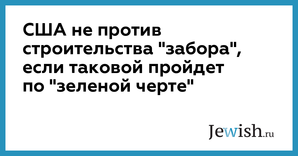 США не против строительства "забора", если таковой пройдет по "зеленой черте"