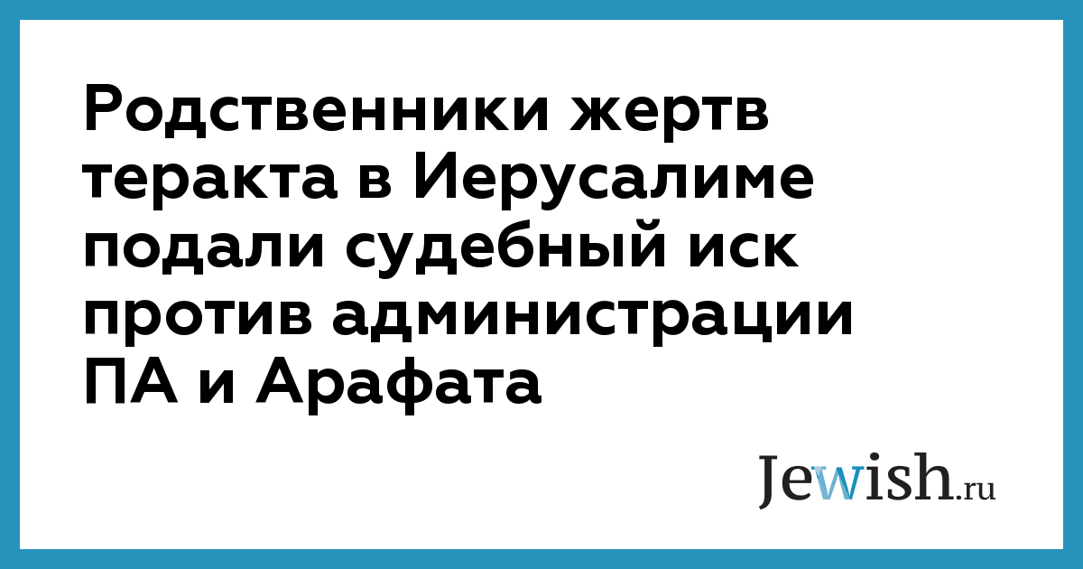 Родственники жертв теракта в Иерусалиме подали судебный иск против администрации ПА и Арафата