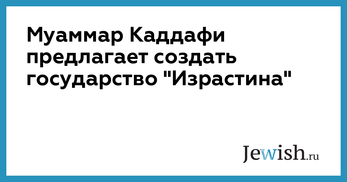 В частности Каддафи предлагает создать бинациональное еврейско-мусульманское государство — ливийский лидер даже посоветовал назвать его "Израстиной", где должны соблюдаться следующие принципы — совместный еврейско-палестинский парламент, возвращение палестинских беженцев на "их земли", свободные, "неподконтрольные" выборы и т.д.
