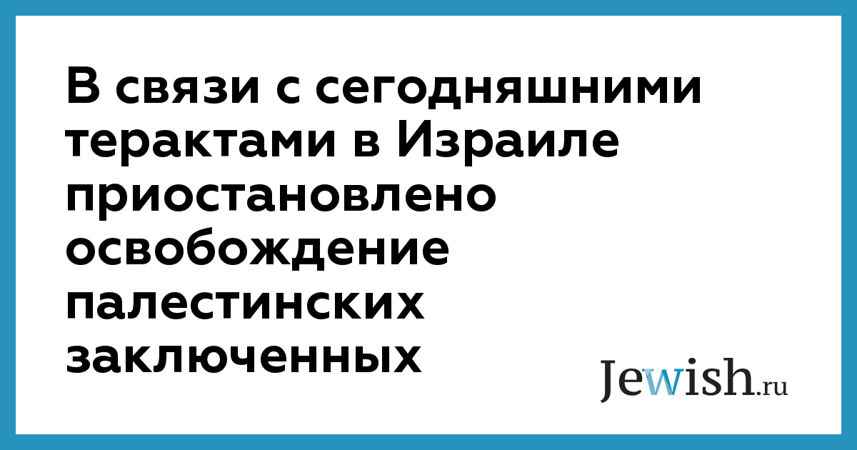 В связи с сегодняшними терактами в Израиле приостановлено освобождение палестинских заключенных