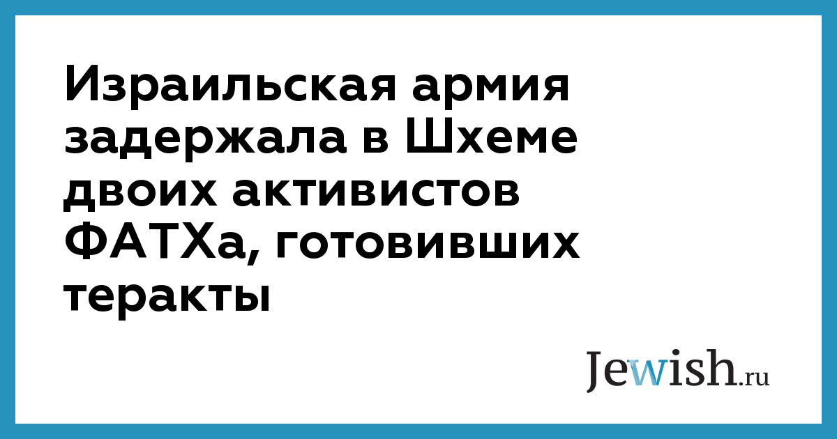 Израильская армия задержала в Шхеме двоих активистов ФАТХа, готовивших теракты