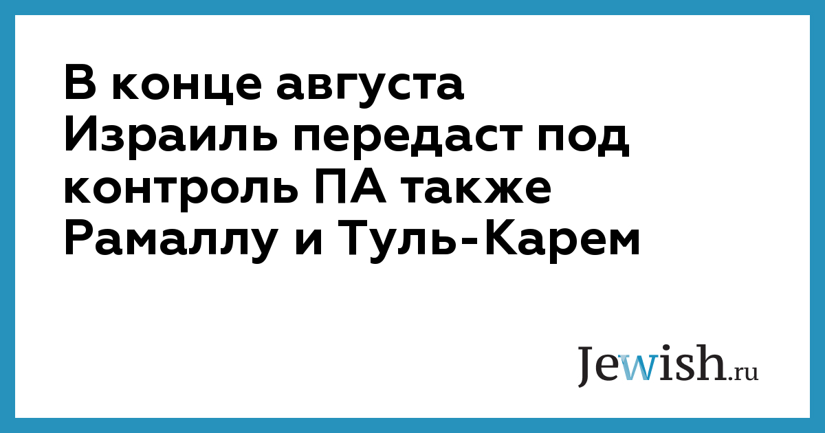 В конце августа Израиль передаст под контроль ПА также Рамаллу и Туль-Карем