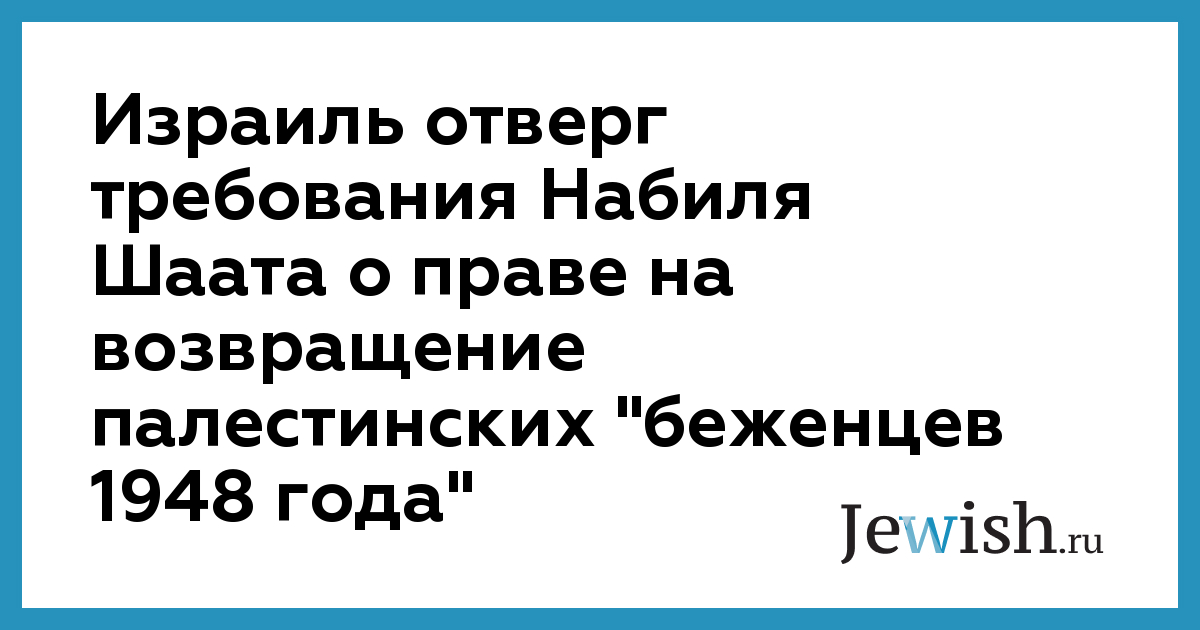 Израиль отверг требования Набиля Шаата о праве на возвращение палестинских "беженцев 1948 года"