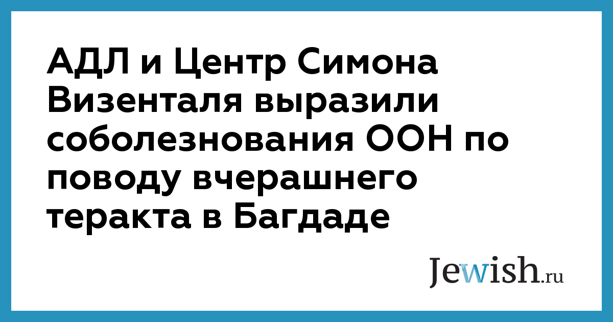 АДЛ и Центр Симона Визенталя выразили соболезнования ООН по поводу вчерашнего теракта в Багдаде