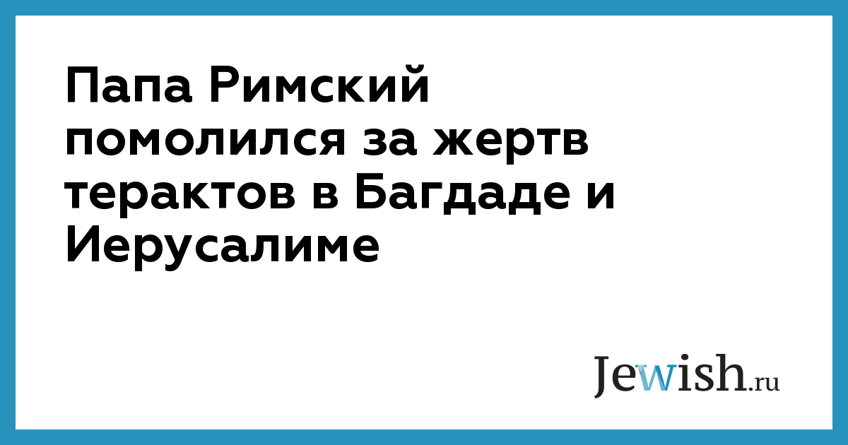 Папа Римский помолился за жертв терактов в Багдаде и Иерусалиме