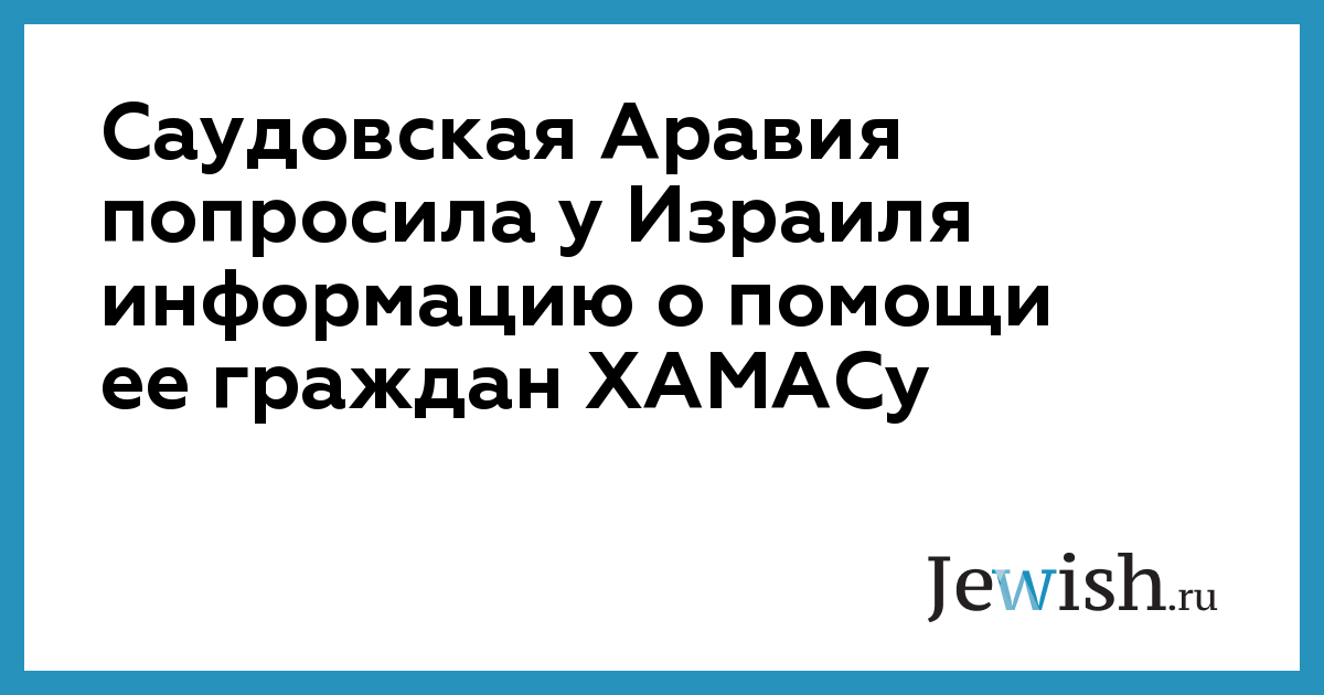 Саудовская Аравия попросила у Израиля информацию о помощи ее граждан ХАМАСу