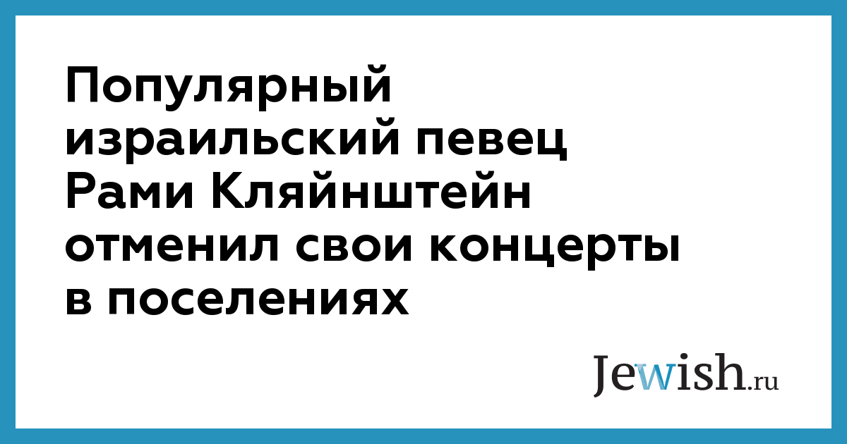 Популярный израильский певец Рами Кляйнштейн отменил свои концерты в поселениях