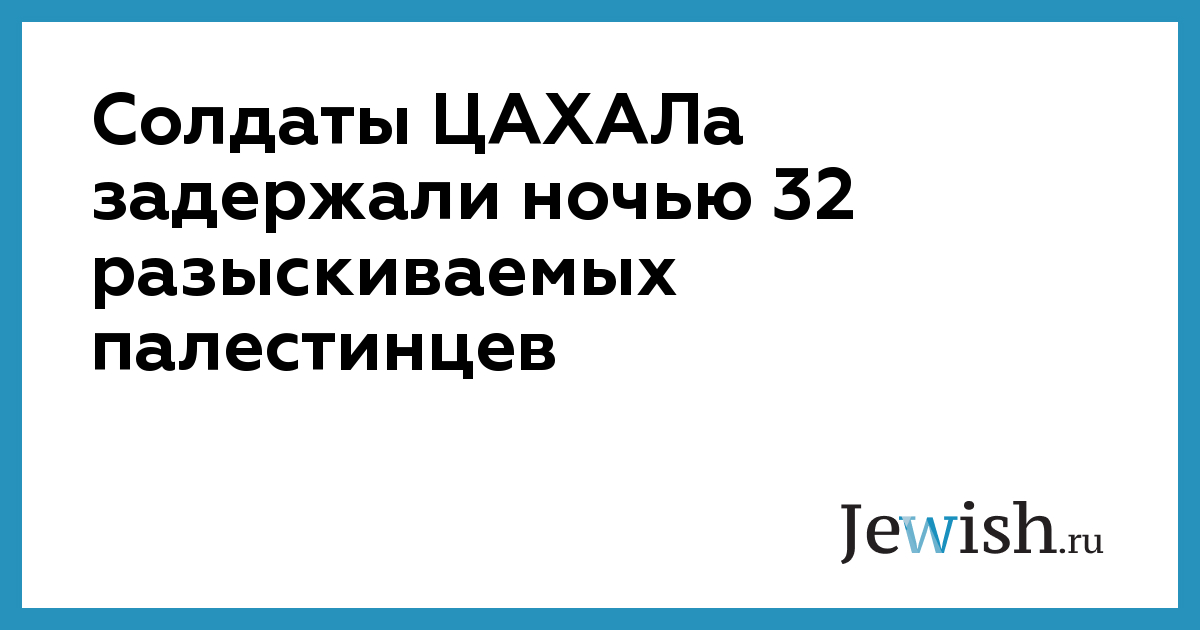 Солдаты ЦАХАЛа задержали ночью 32 разыскиваемых палестинцев