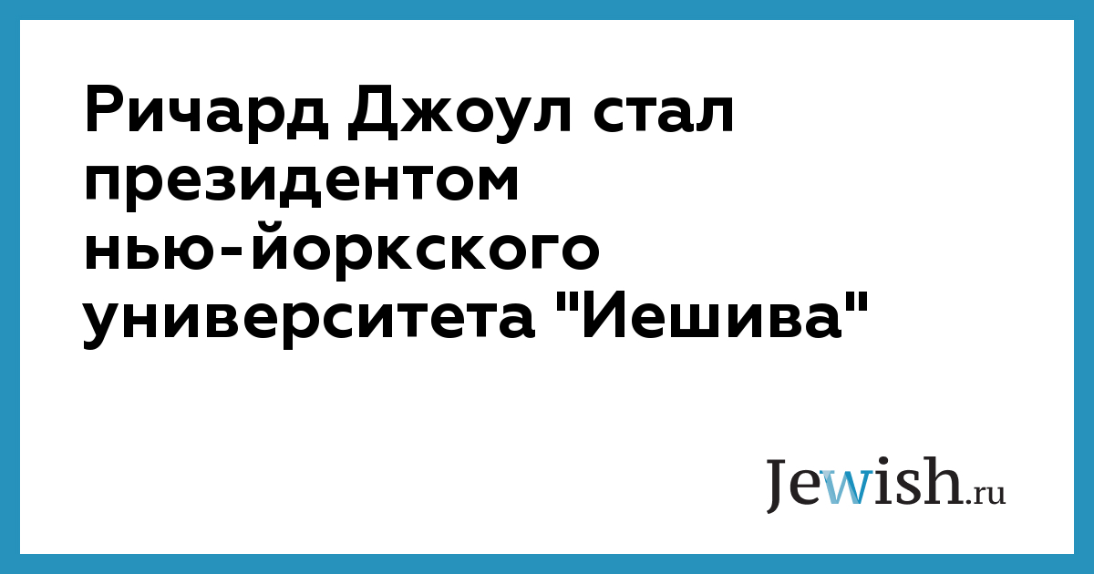 Ричард Джоул стал президентом нью-йоркского университета "Иешива"