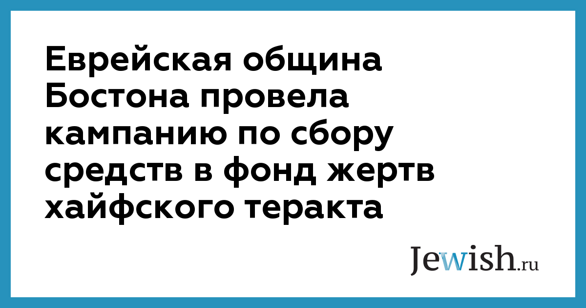 Еврейская община Бостона провела кампанию по сбору средств в фонд жертв хайфского теракта