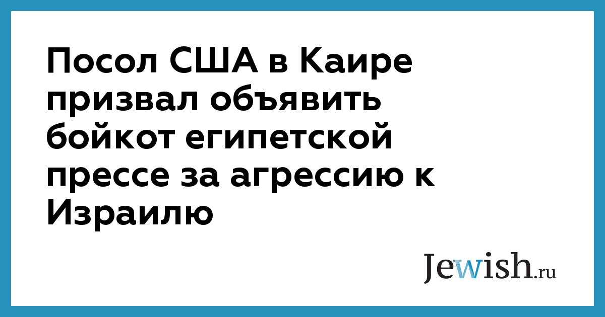Посол США в Каире призвал объявить бойкот египетской прессе за агрессию к Израилю