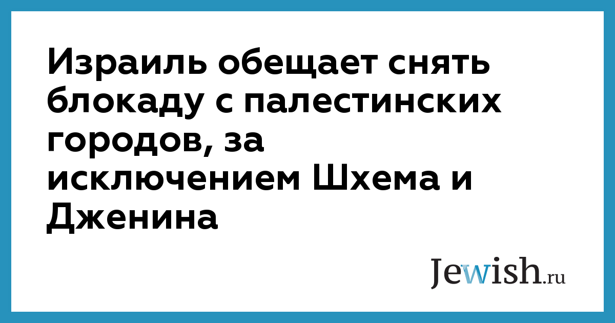 Израиль обещает снять блокаду с палестинских городов, за исключением Шхема и Дженина