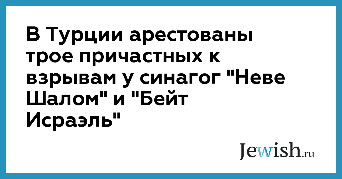В Турции арестованы трое причастных к взрывам у синагог "Неве Шалом" и "Бейт Исраэль"