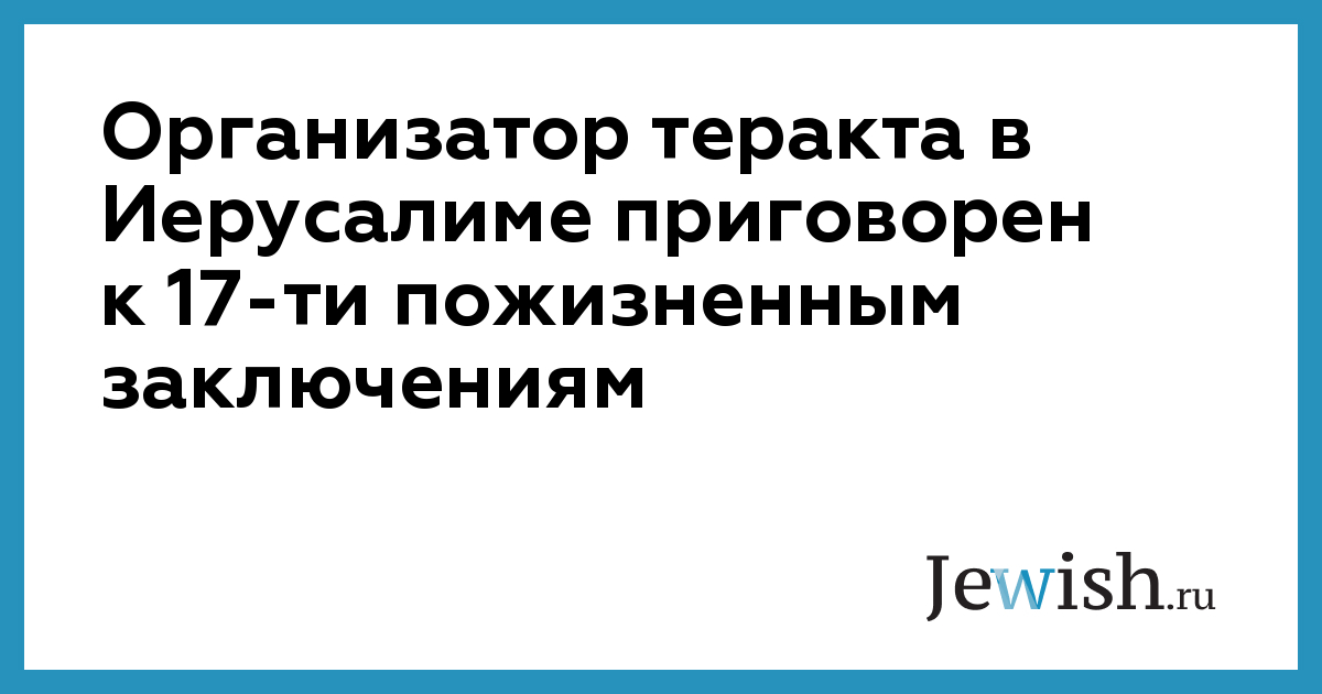 Организатор теракта в Иерусалиме приговорен к 17-ти пожизненным заключениям