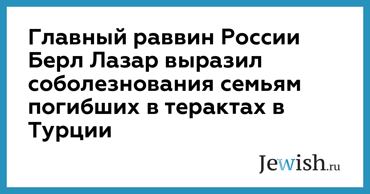Главный раввин России Берл Лазар, находящийся сейчас на международной конференции в Нью-Йорке, решительно осудил террористические акты, совершенные 20 ноября в Стамбуле. "Я глубоко потрясен сообщениями о трагических событиях, произошедших в Турции. Череда кровопролитных терактов, направленных против невинных людей, вызывает негодование и глубокую боль", — сказал главный раввин России.