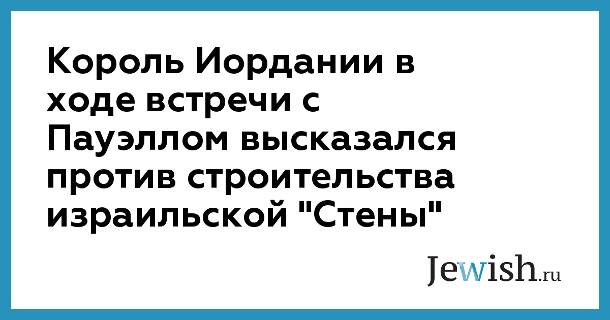 Король Иордании в ходе встречи с Пауэллом высказался против строительства израильской "Стены"