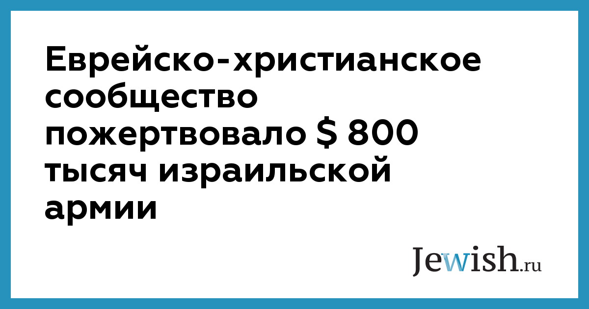 Еврейско-христианское сообщество пожертвовало $ 800 тысяч израильской армии