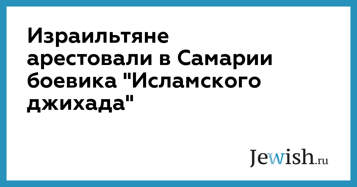 Израильтяне арестовали в Самарии боевика "Исламского джихада"