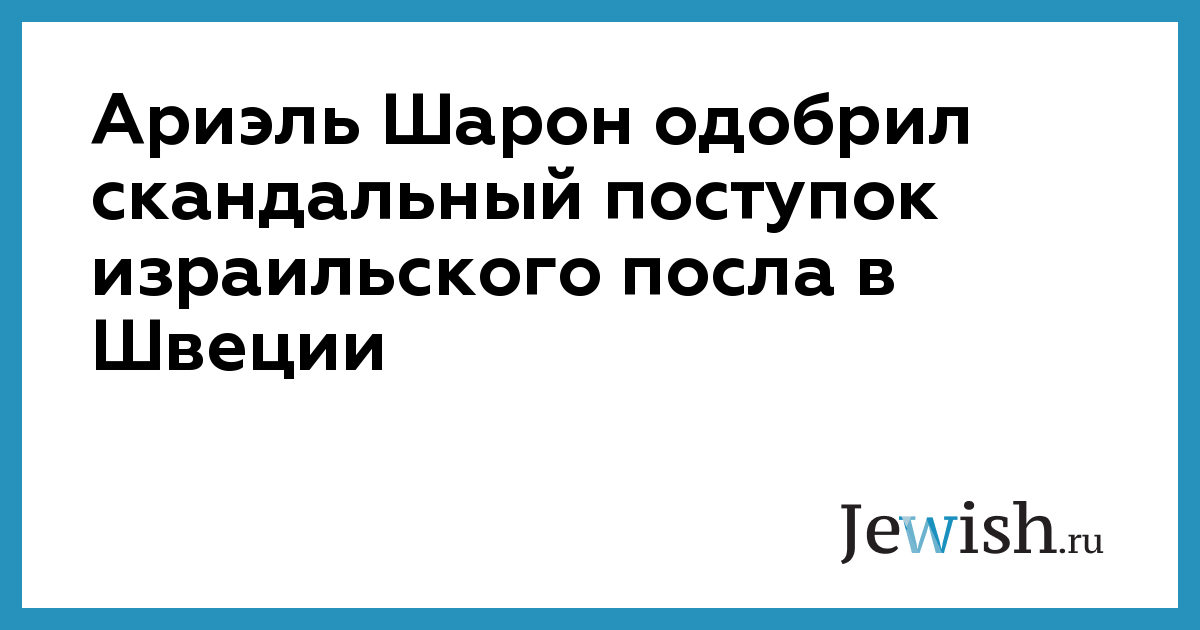 Ариэль Шарон одобрил скандальный поступок израильского посла в Швеции