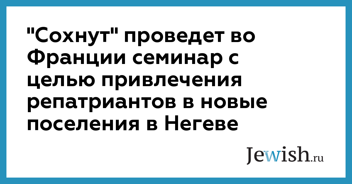 "Сохнут" проведет во Франции семинар с целью привлечения репатриантов в новые поселения в Негеве